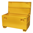 Manufactured from heavy gauge steel with seam welded joints. Folded lips add strength and rigidity. Box may be secured with a padlock hidden in recess at the front. Tamperproof locking system protects padlock for extra security. Features industrial strength handles on each side of box for manoeuvrability. Lid features gas support strut(s) for easy-opening. Fitted with welded feet allowing unit to be moved by forklift. Feet have pre-drilled holes for the option of securing in one place or for easy attachment of four heavy-duty castors (optional extra Model No. STBWK). Suitable for secure storage of tools and heavy equipment on site, vehicle, in the workshop or at home.