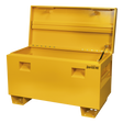 Manufactured from heavy gauge steel with seam welded joints. Folded lips add strength and rigidity. Box may be secured with a padlock hidden in recess at the front. Tamperproof locking system protects padlock for extra security. Features industrial strength handles on each side of box for manoeuvrability. Lid features gas support strut for easy-opening. Fitted with welded feet allowing unit to be moved by forklift. Feet have pre-drilled holes for the option of securing in one place or for easy attachment of four heavy-duty castors (optional extra, order Model No. STBWK). Suitable for secure storage of tools and heavy equipment on site, vehicle, in the workshop or at home.