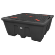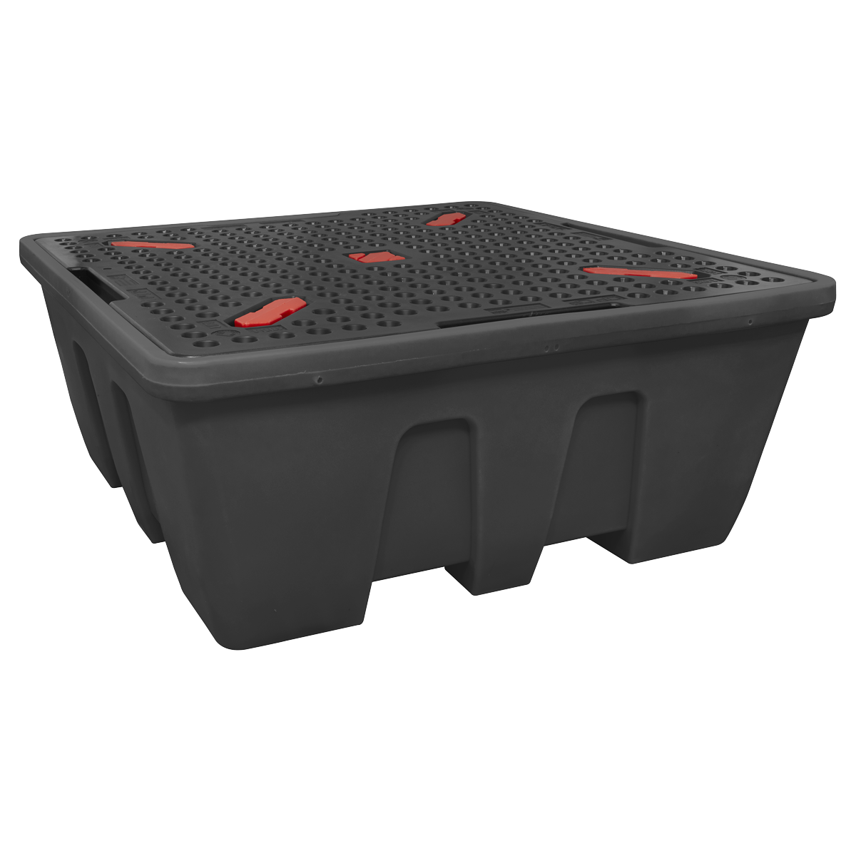 Heavy-duty polyethylene IBC bund designed to catch and prevent spillages. Features polyethylene centre support providing added strength and stability to load. Manufactured with 1100L spill tray to comply with storage regulations. Suitable for storage of 1 x IBC container. Can be easily moved by forklifts and pallet trucks. Max load 2500kg.