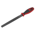 Smooth cut file for a finer finish to the workpiece. Features comfort grip handle with hanging hole.