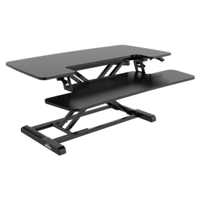 Height-adjustable desk riser creates the possibility of a sitting or standing working environment. Spacious 35" work surface enables you to keep all your essential office items in one space. Features sizeable keyboard tray which is easily removable when not in use. Desk riser is vertically adjustable ensuring you stay within the footprint of your desktop. Smooth, pneumatic lift functionality powered by a high quality gas strut. Converts any desk into a standing desk.