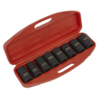 Manufactured from Chrome Molybdenum steel with manganese phosphate finish for added corrosion resistance. Deep WallDrive® sockets, suitable for use with impact type air wrenches. Supplied in storage case.