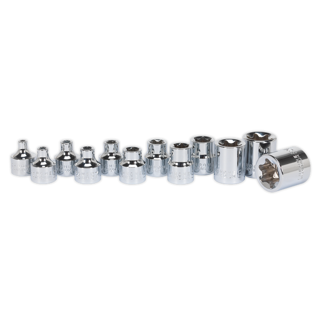 • 12PC SET OF SOCKETS – 3/8”Sq Drive TRX-Star* sockets suitable for a range of applications. Contents: E4, E5, E6, E7, E8, E10, E11, E12, E14, E16, E18, E20.