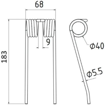 Pick-Up Tine Length:183mm, Width:68mm, Ø5.5mm - Replacement for Pottinger To fit as: 436151 | Sparex Part No.S.22886 0.97 kg