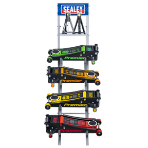 - Versatile 3 Tonne Capacity: The Sealey JS1COMBO2 Jack Stand Deal includes four low profile trolley jacks (in green, orange, red, and yellow) and a pair of axle stands, providing robust support for a wide range of vehicles.