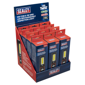 Sealey | LED Twist Rechargeable Inspection Light 5W COB & 1W SMD - Display Box of 12 - LED601DB 3.354 kg
