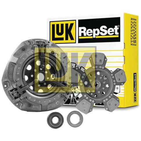 This LUK Clutch Kit with Bearings is a high-quality replacement part designed for Massey Ferguson tractors. It features a dual cover with a 250/300mm size and includes a segment cushion for smooth operation. The kit is made with durable materials, including organic captive discs and cerametallic loose discs, ensuring long-lasting performance.