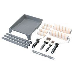 This decorating kit is perfect for painting on lightly textured or semi-smooth surfaces using different types of emulsion. The kit includes a 4" and 9" roller with a soft grip handle to ensure comfortable use. The polyester sleeves are woven and designed to provide even coverage with minimal splatter. In addition, you get two paint brushes, one 30mm and another 50mm, both equipped with 100% solid round tapered polyester filaments and a stainless steel ferrule. The soft grip handle will make sure you have a comfortable grip when using the brushes. The kit also includes a paint stirrer and an extension pole set that is compatible with the rollers.