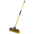 Hard-wearing, dual-purpose, split-tip polypropylene and PVC fibres ideal for indoor and outdoor surfaces. Stiff inner fibres sweep concrete, asphalt and other rough surfaces. Soft outer fibres are ideal for sweeping fine dirt and dust. Features high quality steel handle with grip bracket to secure and prevent damage to handle and resin block. Fitted with handle storage clips for easy storage.