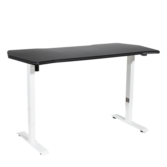 Height-adjustable desk with a stylish rectangular white desktop ideal for your office or home needs. Single motor system ensures a fast and stable adjustment. Features ultra-quiet operation with a sound level less than 50dB. Height Range: 710-1210mm. Desktop Dimensions (W x D): 1400 x 700mm. Desktop Thickness: 1". Maximum Load Capacity: 70kg. Some simple assembly is required. Monitor arms not included.