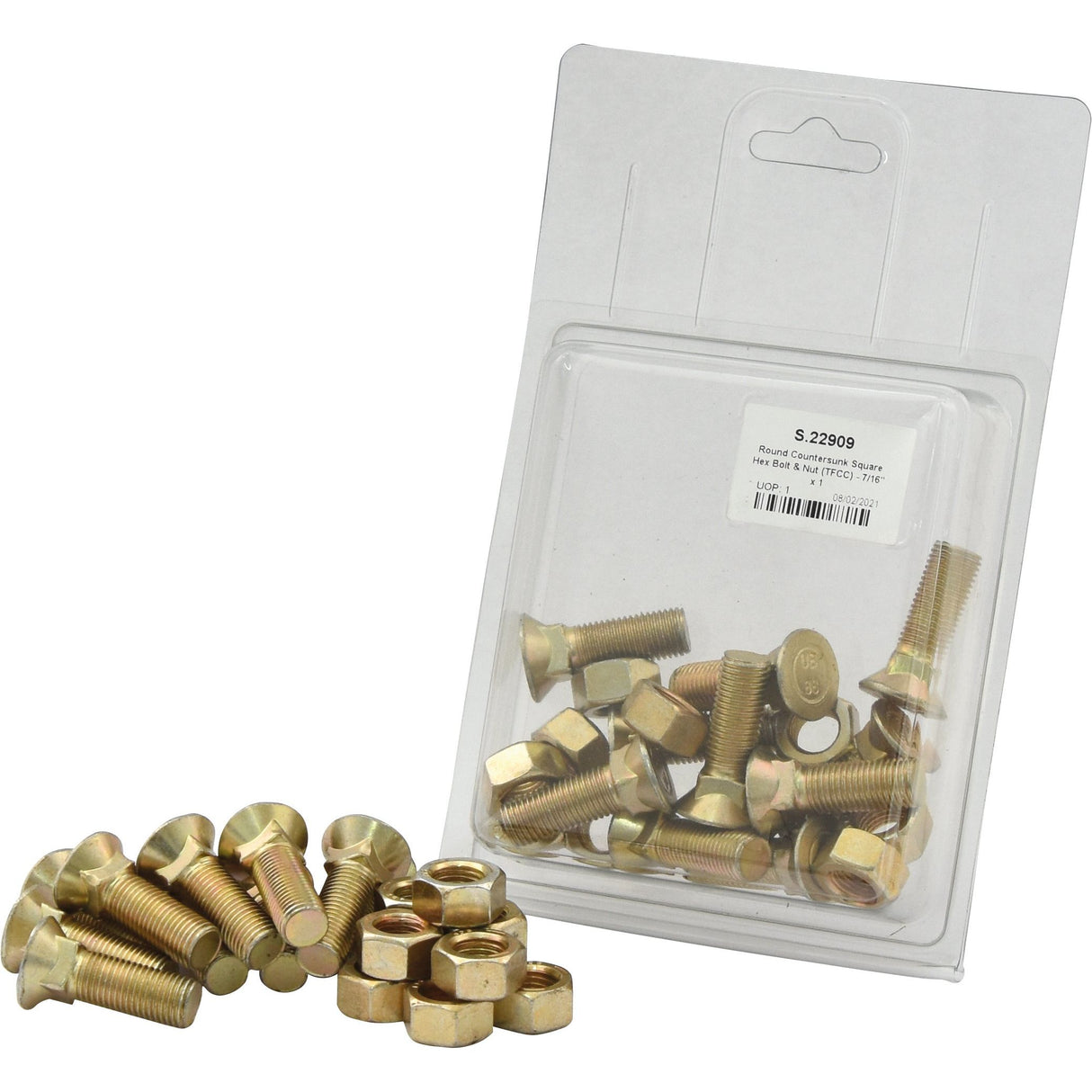Round Countersunk Square Hex Bolt & Nut (TFCC) - 7/16'' x 1 3/8'' Tensile strength 8.8 (10 pcs. Agripak) | Sparex Part No.S.22909 0.45 kg