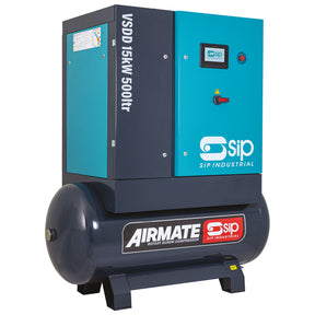 The SIP VSDD 15kW 10bar 500L Rotary Screw Compressor delivers continuous, efficient compressed air, ideal for medium to large workshops, spray shops, and industrial environments. Featuring a 15kW variable speed direct drive motor, it ensures reliable, energy-optimized performance.