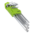Manufactured from heat treated and hardened Chrome Vanadium steel with satin finish. Keys range in length from 62.5 to 177mm and in size from 1/16" to 3/8". Ball-end allows key to drive fixing at up to 30°. Supplied in easy-access case with hanging tag for safe storage and quick key selection.