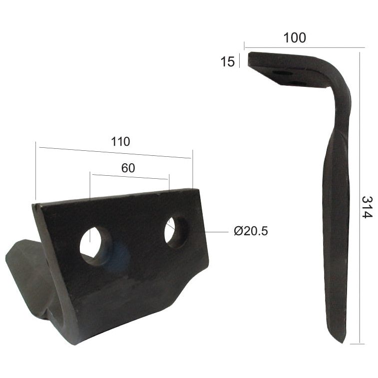 Power Harrow Blade 110x15x314mm RH. Hole centres: 60mm. Hole Ø 20.5mm. Replacement for Feraboli (SKH & MF). | Sparex Part No.S.78130 2.69 kg