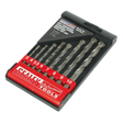 Tungsten carbide tipped for prolonged life and heavy-duty use. Shank features a special flute design for fast and effective waste removal. Set covers sizes from Ø3 to 10mm. Supplied in storage case.