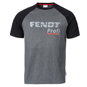 New Fendt Profi Shirt with attractive and comfortable Raglan cut and reflective print. Fendt Two-tone casual round-neck T-shirt with raglan sleeves, reflective print on chest and back, reflective piping at the front, lined with a red neckband.