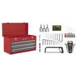 Portable Tool Chest 3 Drawer with Ball-Bearing Slides - Red/Grey & 93pc Tool Kit - AP9243BBCOMBO 12.03 kg