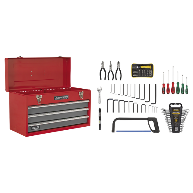 American PRO® 3 Drawer Portable Tool Chest Model No. AP9243BB (see page 1059 for full details) with 93pc Tool Kit.