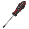 High quality Chrome Vanadium satin finished shaft with shot blasted and magnetized tip. Ergonomic polypropylene and TPV rubber soft grip handle maximize power transfer from hand to fixing. Includes hanging hole for alternative storage.