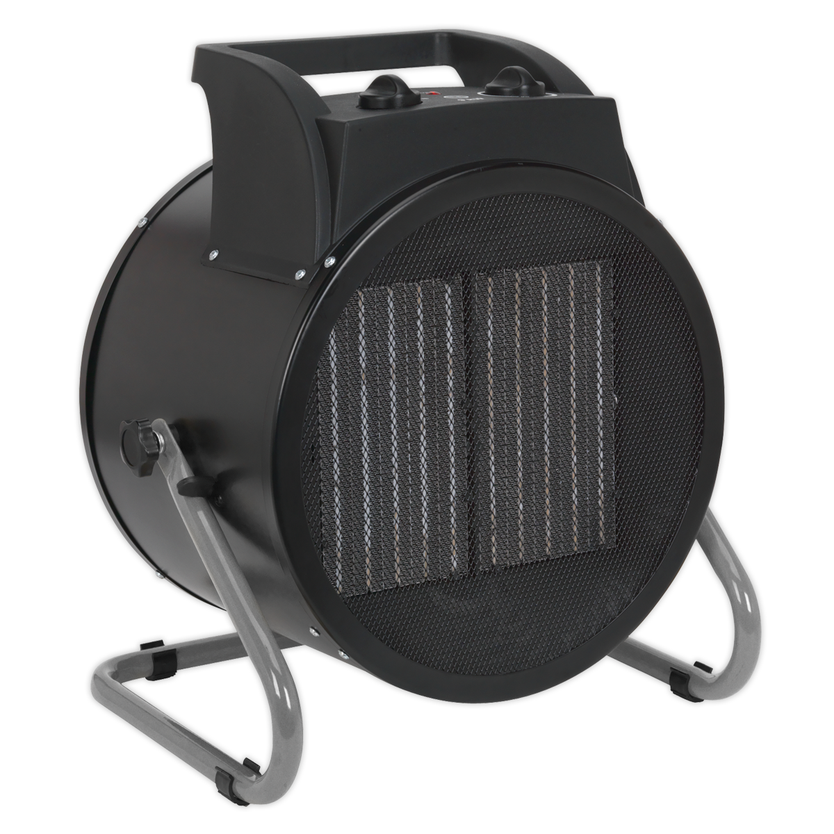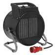 Features PTC heat conducting ceramic elements to achieve an instant, odour-free heat. Ambient room thermostat maintains temperature at a preset level. Ideal for industrial applications with two heat settings or fan only. Supplied with 3-phase power cable and plug.