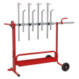 Suitable for supporting multiple panels and trims including wings, bumpers and spoilers. Eight adjustable bars and 360° rotation make this stand suitable for almost any panel types. Portable for easy manoeuvring of application from preparation to spray booth.