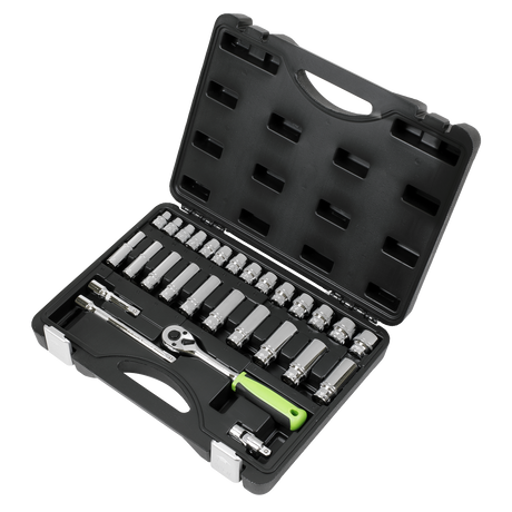 Sealey | Siegen Extendable Ratchet Socket Set 3/8"Sq Drive 34pc - S01287