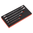 Manufactured from drop-forged Chrome Vanadium steel. Hardened and tempered with a fully polished mirror finish for resistance to corrosion. Five spanners covering ten sizes of TRX-Star* fixings. Supplied in EVA storage tray.