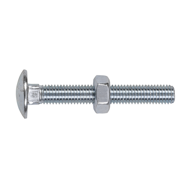 Zinc plated DIN 603 coach bolts and nuts. Supplied in resealable bag.