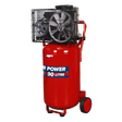 Suitable for the professional workshop fitted with a genuine 3hp motor. Vertical tank saves space without compromising on performance. Twin capacitors and a centrifugal switch aid trouble-free start-up on a 13A supply. Pump features heavy-duty full cast cylinders, capped by an alloy head for improved heat dissipation and long-life. Heavy-duty drive guard protects belt and flywheel that is designed to force air over the pump to aid cooling.