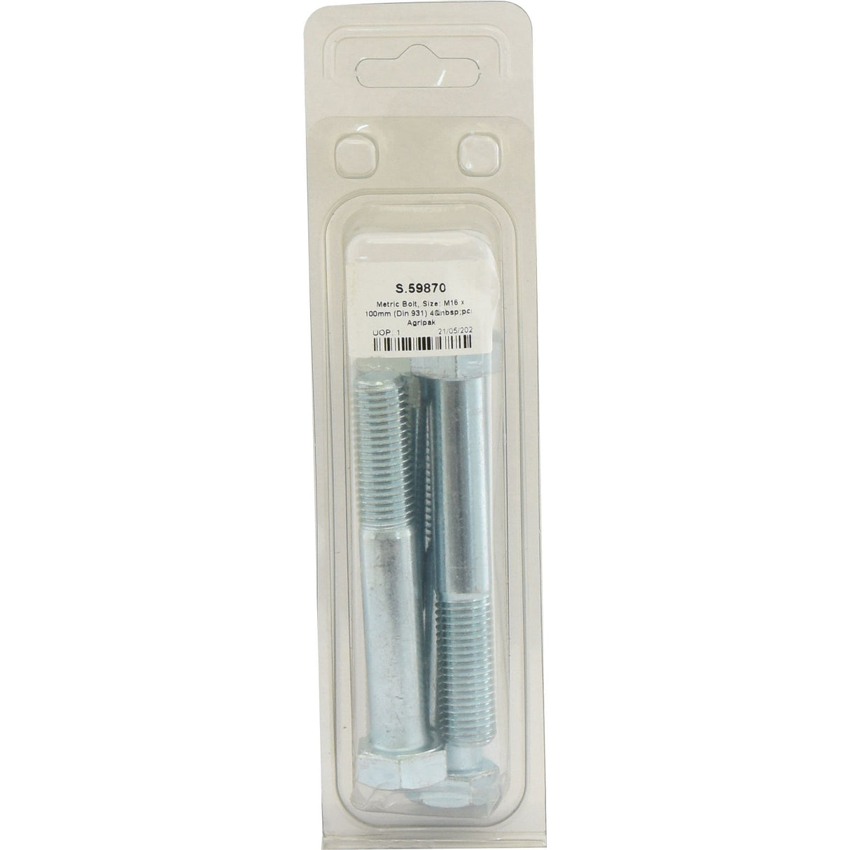 Metric Bolt, M16x100mm (DIN 931) - 4 pcs. Agripak | Sparex Part No. S.59870
