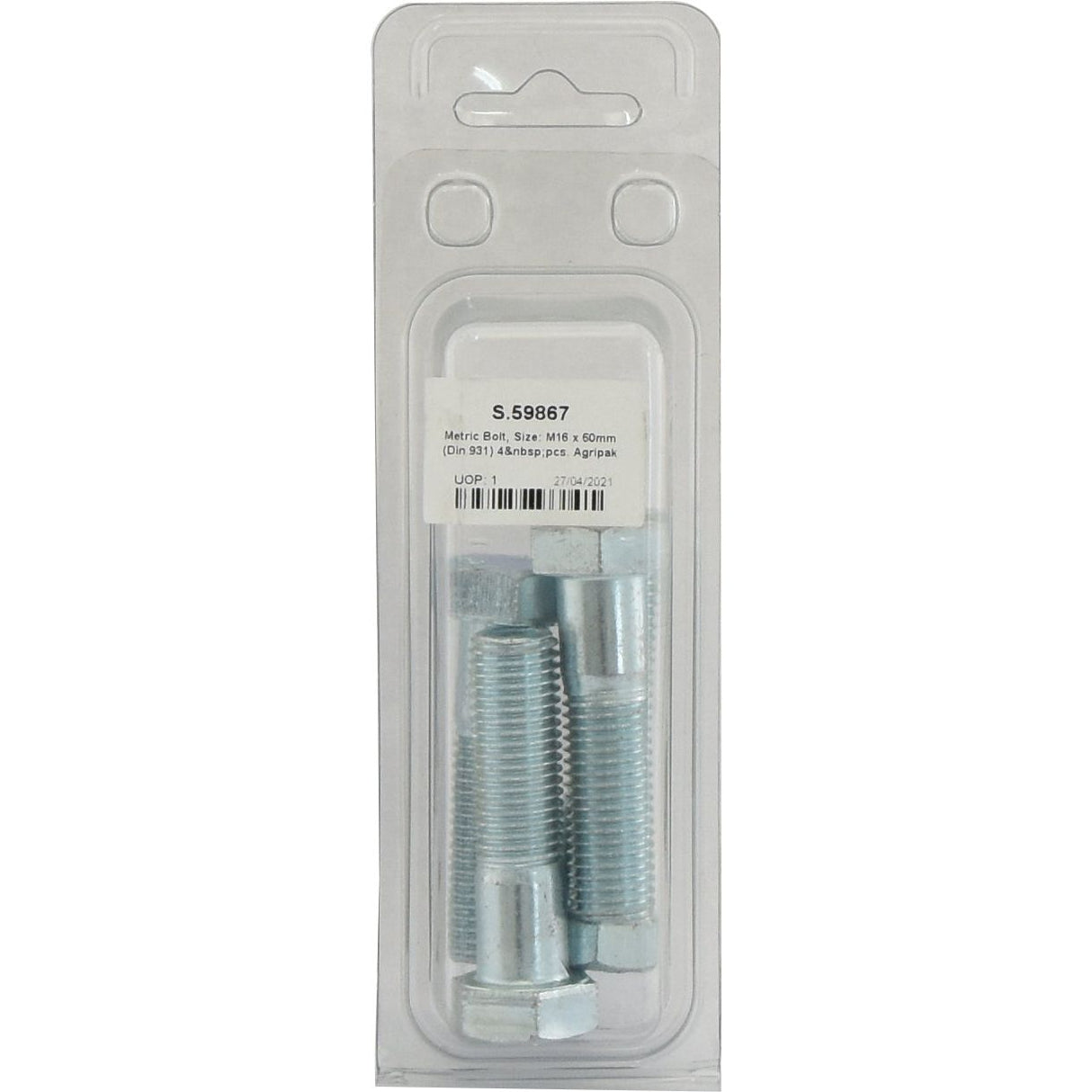 Metric Bolt, M16x60mm (DIN 931) - 4 pcs. Agripak | Sparex Part No. S.59867