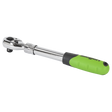 Chrome Vanadium steel, 72-tooth ratchet wrench, hardened and tempered with a fully polished mirror finish. Quick release locking ring retains extension at set increments, giving five different shaft lengths (300-430mm). Soft grip handle for added comfort and control. Pear-head design with flip reverse mechanism and push-button quick release.