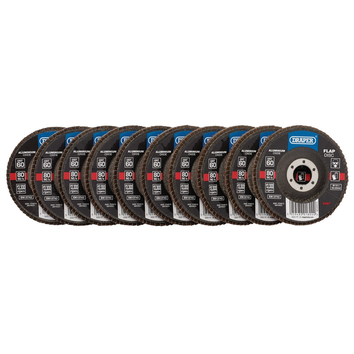 Draper Aluminium Oxide Flap Discs, 115 X 22.23mm, 60 Grit (Pack Of 10) - FDAB115 1 g