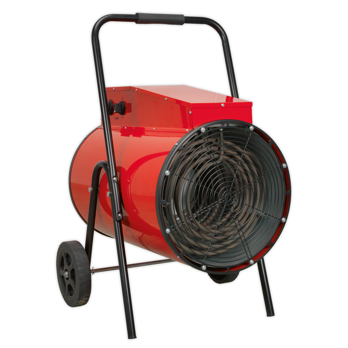 - High-performance electric fan heater designed for industrial applications, delivering a powerful 30kW (102,500 Btu/hr) heat output.