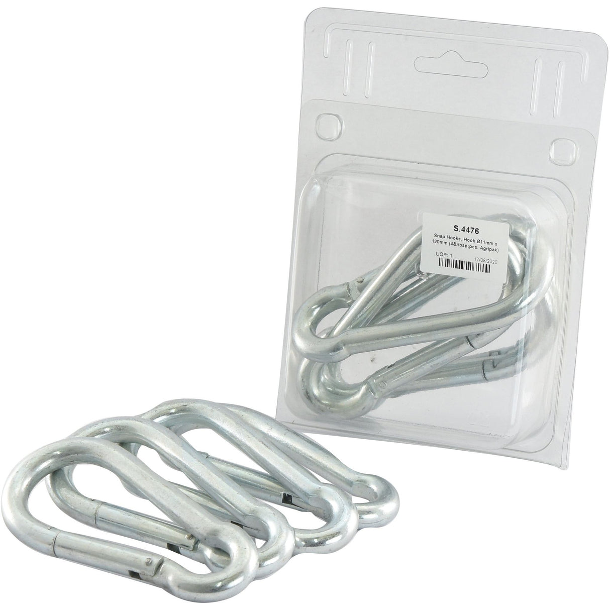 Introducing the Snap Hook, designed for versatility and durability. With a hook diameter of 11mm and a length of 120mm, this product is perfect for a variety of applications.