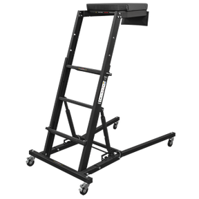 Multi-height and angle adjustments to work in comfort on high level engines on jeeps, pickups, trucks, SUV's, agricultural vehicles, and more. Work at the right height and angle in comfort, on the 60mm deep foam, heavy vinyl covered body pad. Heavy-duty steel framework, powder coat painted for an anti-scratch/rust finish. Easy-rolling Ø75mm composite swivel castors (two lockable). Folding design for easy transportation and storing.