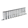 Chrome Vanadium steel 12-point sockets, hardened and tempered for added strength. Fully polished mirror finish for corrosion resistance. WallDrive® configuration giving an additional 30% more torque handling power than traditional sockets. Knurled ring for extra grip with oily fingers. Supplied with socket rail.