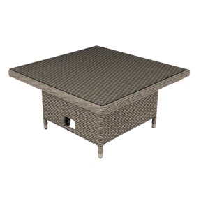 This modern rattan dining table will work in any outdoor space from large gardens to small patios and balconies. Table is easily adjusted to transform into a dining table. Two Height Settings (Low/High): 46cm/68cm. This easy-to-clean tempered glass tabletop has been UV Treated, is fade resistant and can be used outside all year round. Can be used as a dining table, side table, snack table or coffee table. Dimensions (W x D x H) – 90 x 90 x 46-68cm.