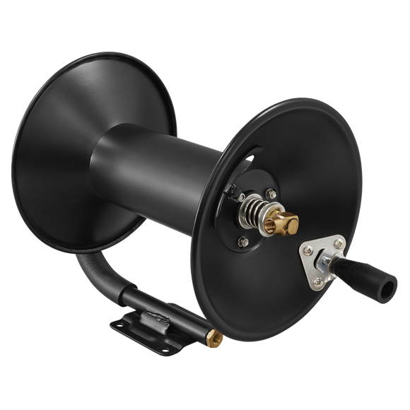 • Manual winding steel drum features tall guides to ensure the hose layers efficiently.