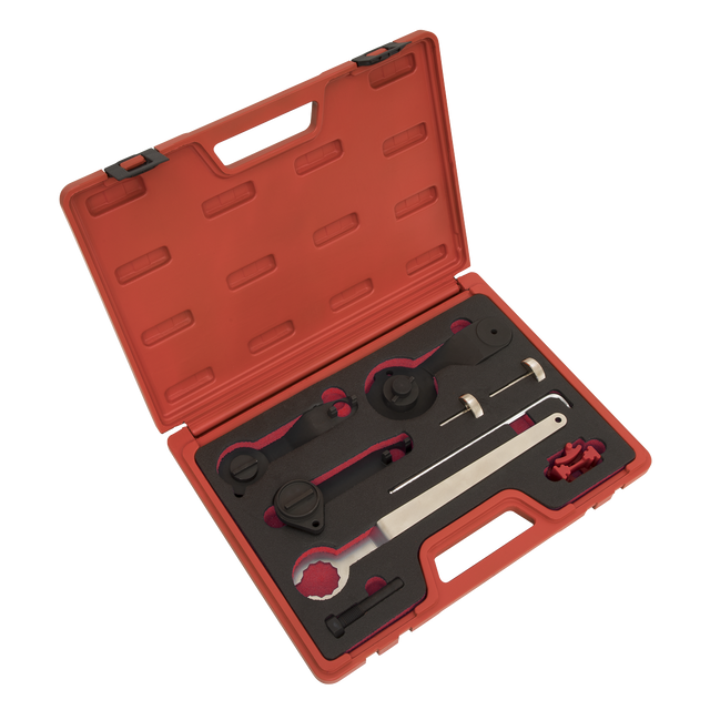 Suitable for the latest generation VAG TSi petrol engines. Contains essential tools for camshaft and crankshaft locking. Supplied in storage case with full instructions and a warning tag.