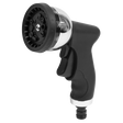 Wide range of ten spray patterns suitable for all tasks including: Full, Shower, Jet, Soaker, Mist, Cone, Centre, Flat, Angle and Vertical. Soft grip ergonomic pistol style handle with locking trigger for maximum comfort during extended periods of use. Manufactured with a rust-resistant metal body and high quality thermoplastic rubber handle. Fitted with standard push-fit hose connection compatible with all universal female hose connectors.