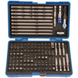 Expert Quality, comprehensive set of 1/4" bits manufactured from chrome vanadium steel, hardened and tempered with a shot blast finish. Bit holder with quick release collet allows bits to be expelled quickly and efficiently. Supplied in a heavy duty storage case with plastic inlay to hold bits securely. Display packed.