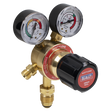 Twin gauge regulator complies to BS EN ISO 2503 with bull nose adaptor and 3/8"BSP hose union. Displays bottle pressure and working pressure for acetylene.