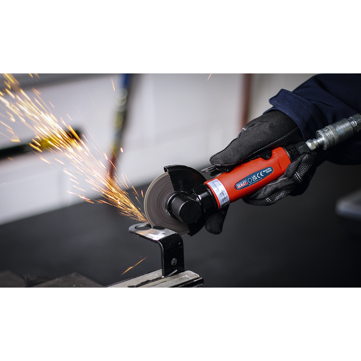 - 360° rotatable metal disc guard and rear air exhaust provide optimal operator protection and versatility in various work environments.