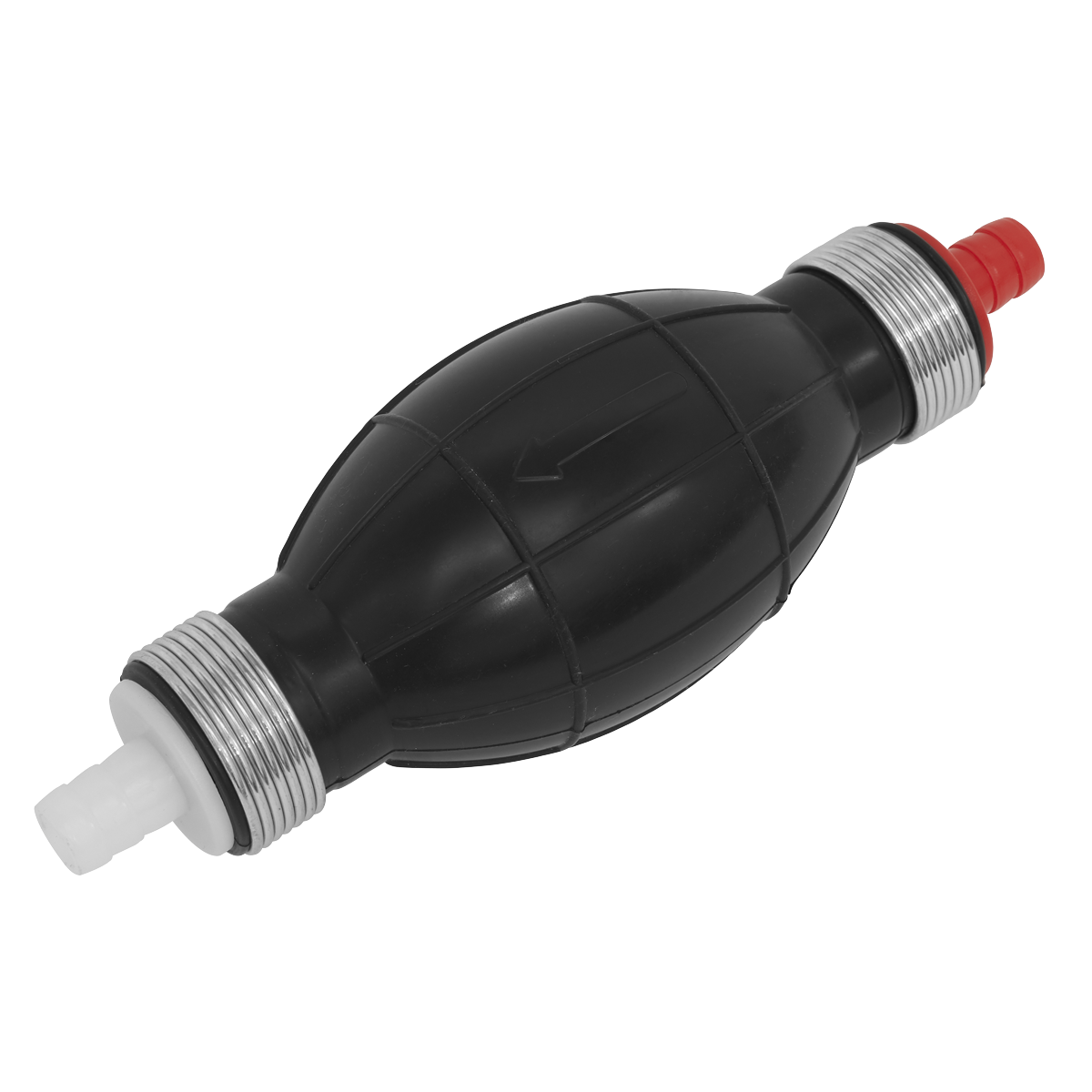 Extra-large 175cc bulb for fast fluid transfer. One-way ball valve draws fluid up, starting syphon process for continuous flow. Fitted with two Ø14mm hose connection points. Ideal for transferring large volumes of fluids. Suitable to use with petrol/diesel, AdBlue®, low viscosity oils, antifreeze, screenwash and water.