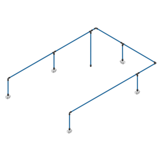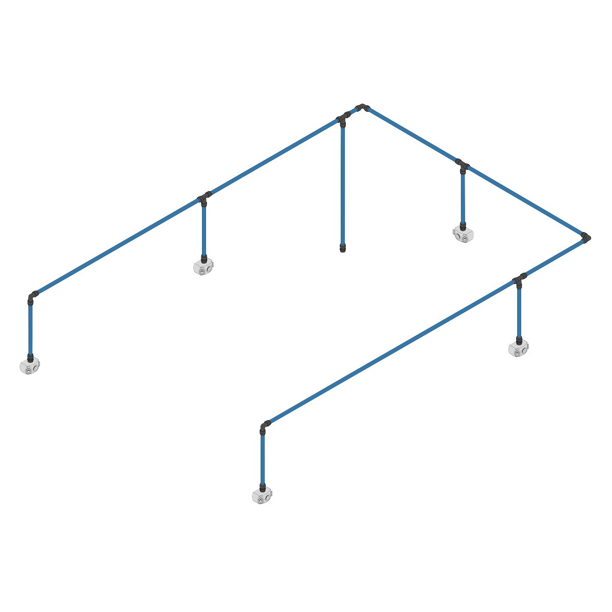 Made from lightweight yet strong acetal copolymer fittings and nylon pipe runs. Simple push action pipe fittings do away with preparing threaded tubes or supplying solvents. Complex pipe and fitting configurations are also assembled more rapidly since the fittings can be disassembled and reconfigured quickly.