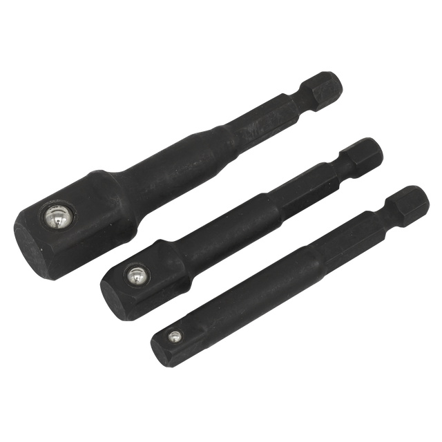 - Comprehensive set includes three essential adaptors: 65mm 1/4"Hex x 1/4"Sq Drive, 65mm 1/4"Hex x 3/8"Sq Drive, and 75mm 1/4"Hex x 1/2"Sq Drive, catering to a wide range of fastening needs.