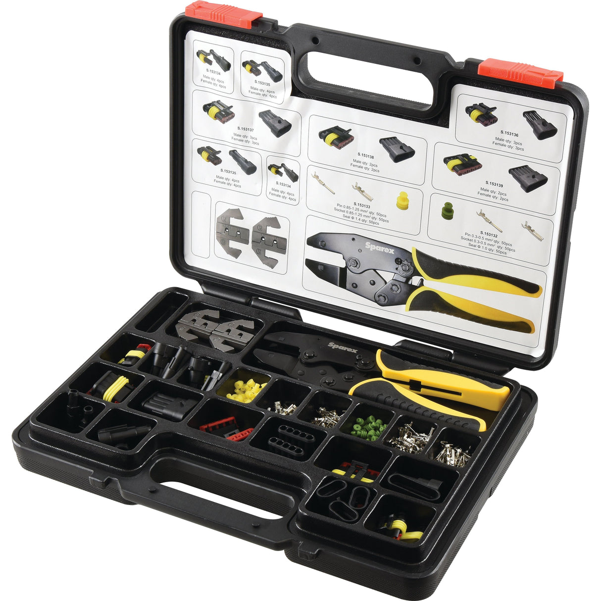 This comprehensive Superseal connector kit from Sparex provides everything you need for a wide range of applications. It includes a crimper, dies, terminals, housings, and seals, making it a convenient and cost-effective solution.
