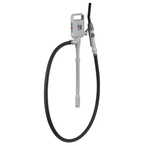 For use with jerry cans or containers to transfer diesel and other liquids. Powered by 2 x D size batteries (not included). Rainproof separate On/Off buttons and LED light. Oil and flame resistant discharge hose. Adjustable suction pipe extends from 380mm to 520mm with Ø32mm suction end.