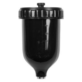 Black plastic helps block out UV light for use with UV curing paints and primers. Brass fitting for the threaded feed joint for easy installation and secure connection 600ml Capacity for storing paint, ink, or various fluids. Compatible with most M16 x 1.5 threaded spray guns. Suitable for use with the following Sealey Spray Guns; S713G, S714G, S717G, S701G, HVLP741, HVLP742, HVLP01, SP01, LVLP01, HVLP05 and HVLP746.